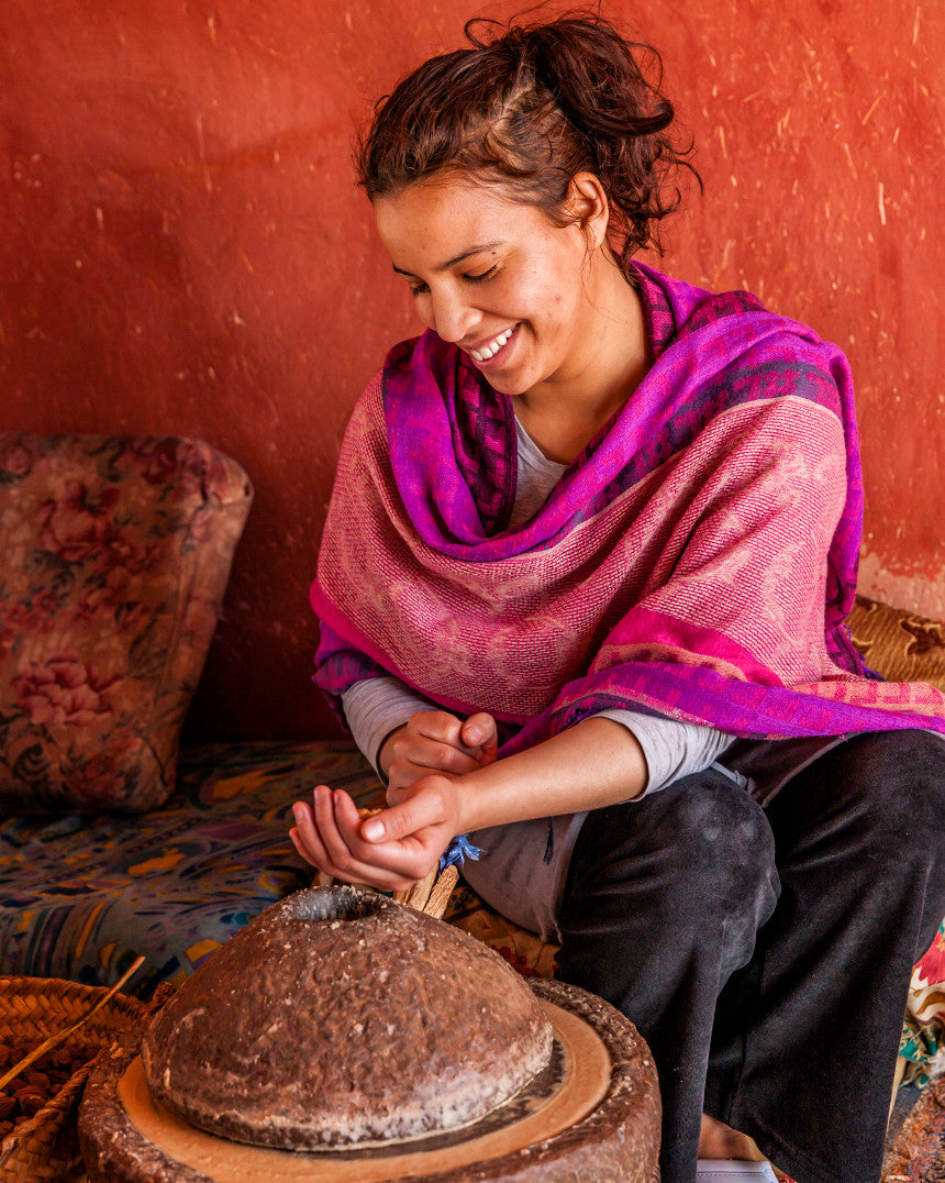 When you purchase Essence of Argan, you are helping to support a women's cooperative in Morocco that works to keep the Argan trees thriving on protected land. Over three million people in Southern Morocco receive a fair wage through the cultivation and sales of Argan Oil.